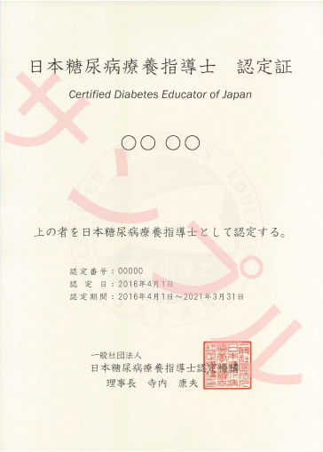 (1)「日本糖尿病療養指導士」認定証について